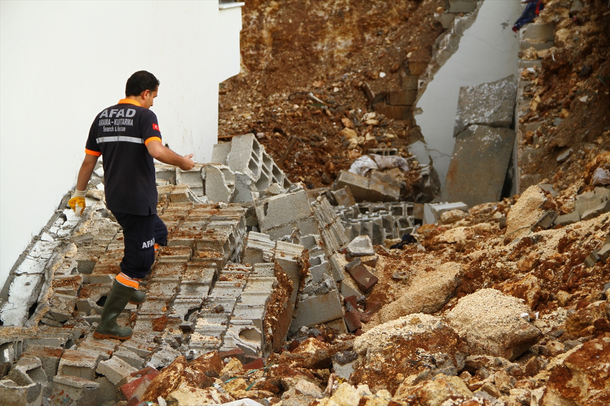 Yağışlar, Yeditepe Mahallesi'ndeki bir sitenin istinat duvarlarının çökmesine neden oldu.