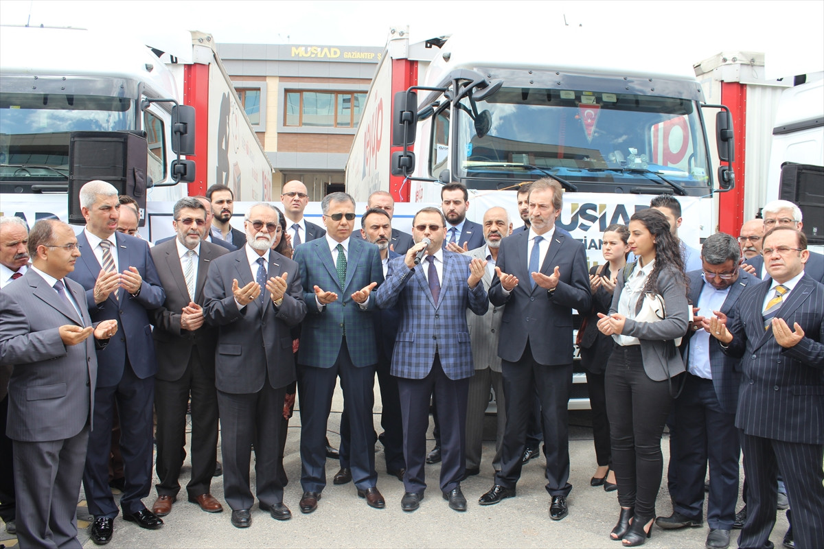 GAZİANTEP (AA) - Müstakil Sanayici ve İşadamları Derneği (MÜSİAD) Gaziantep Şubesi ve İyilik-Der işbirliğiyle Suriye'ye 11 tır gıda yardımı gönderildi.