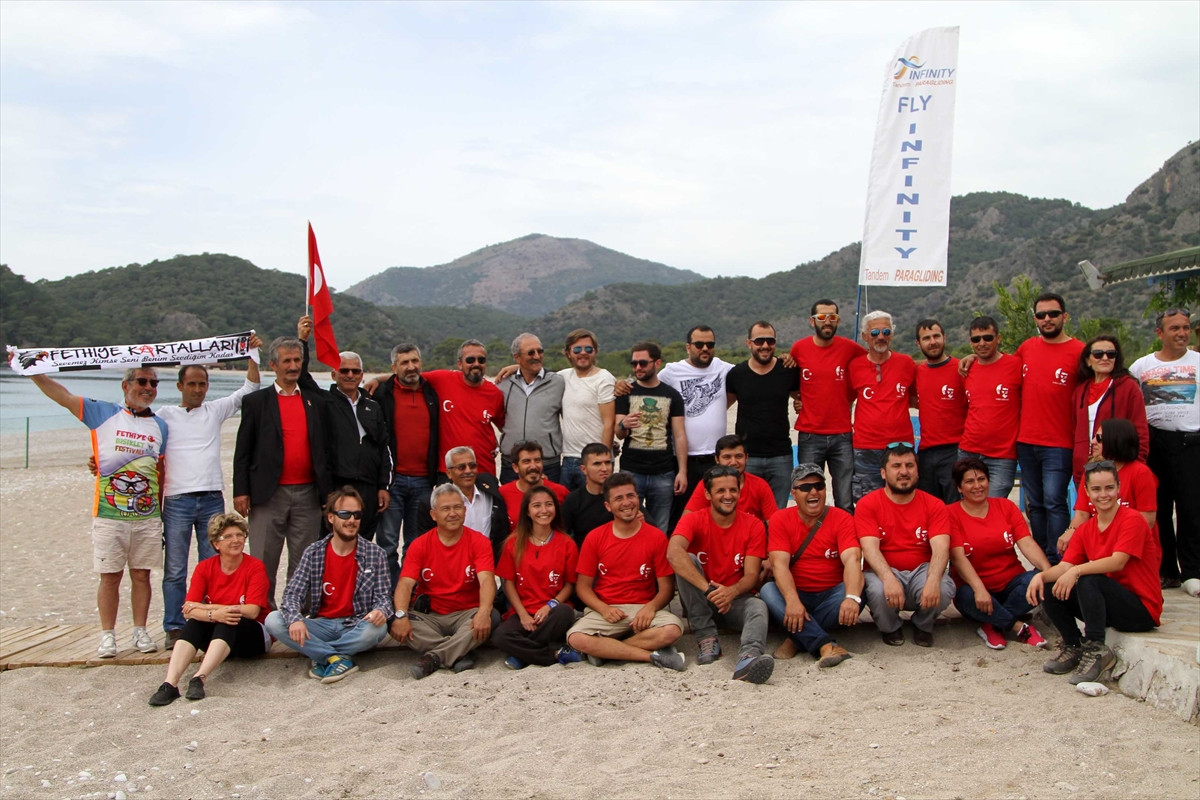 Babadağ Hava Sporları ve Rekreasyon Merkezi'nde faaliyet gösteren özel bir firmanın konuğu olan 23 gazi, Fethiye'nin semalarında yamaç paraşütüyle uçtu.
