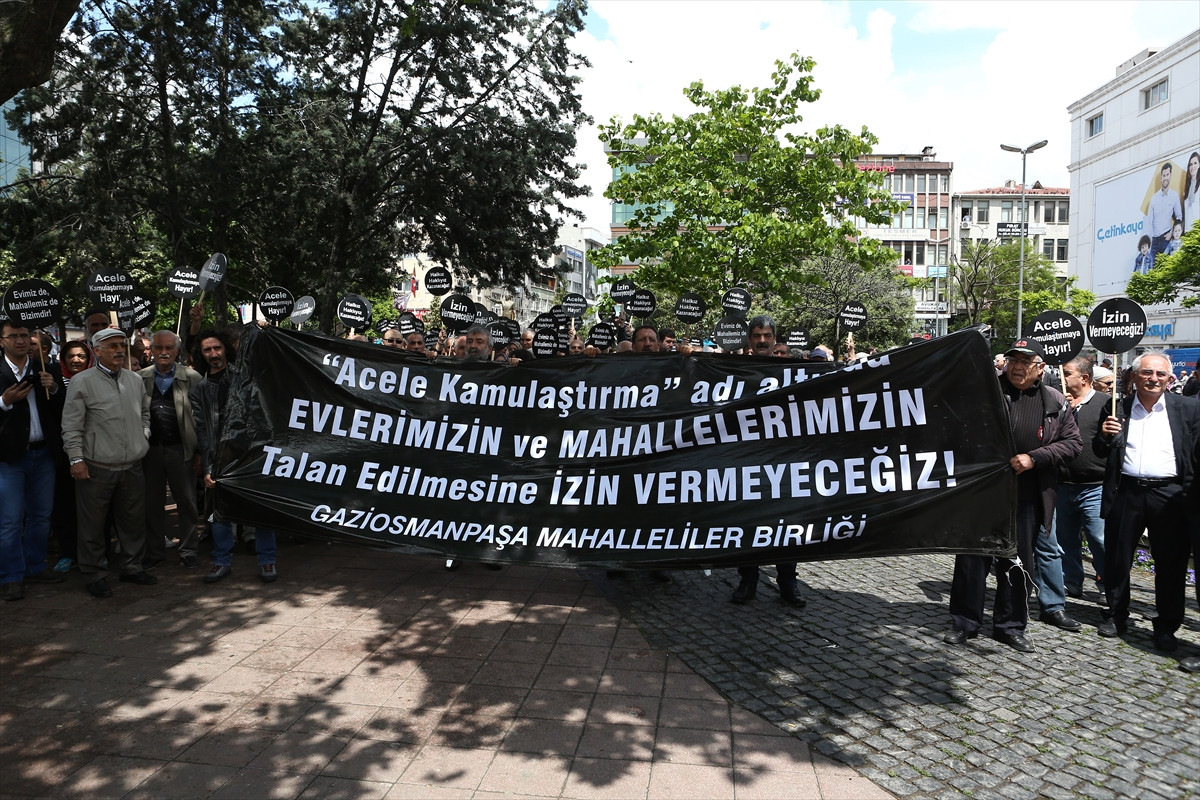 İSTANBUL (AA) - "Gaziosmanpaşa Mahalleler Birliği" adlı grubun üyeleri, ilçede riskli alan kapsamındaki bazı yerlerin kamulaştırılması kararını protesto etti.
