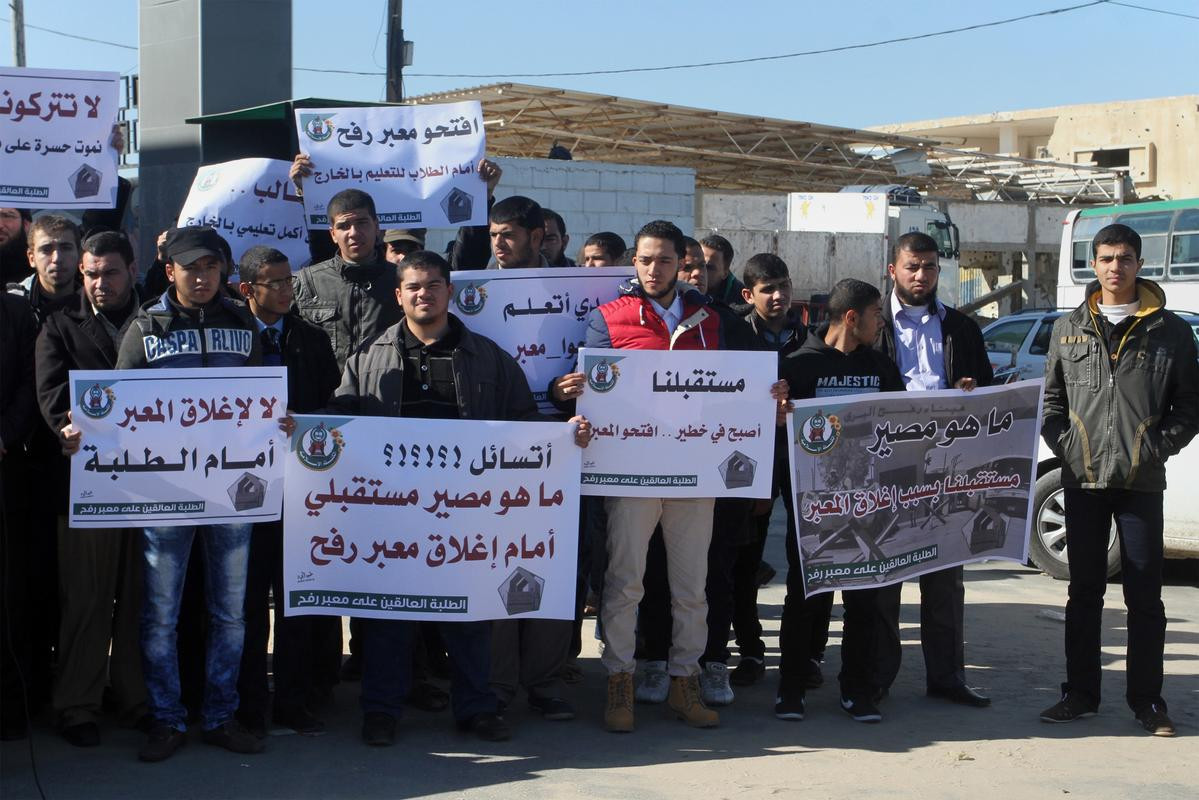 Hamas'ın öğrenci yapılanması İslami Kitlenin Refah Sınır Kapısı önünde organize ettiği gösteriye katılan Filistinliler, "Eğitim geleceğimiz Refah kapısının kapalı kalmasıyla tehdit ediliyor", "Kapıyı açın" yazılı pankartlar taşıdı.