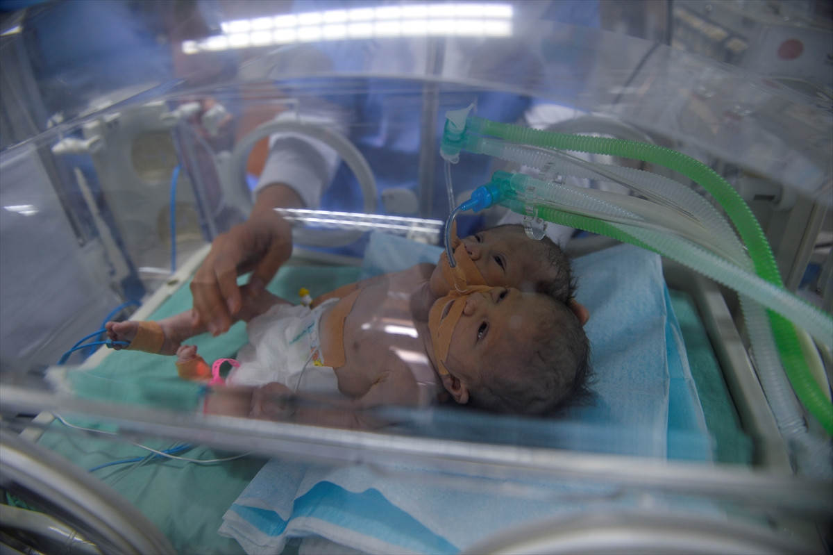 Gazze'de ailesinin ismini açıklamak istemediği genç bir kadının, Dar eş-Şifa Hastanesi'nde iki başlı bir kız bebek doğurduğu, yapışık ikizlerin ayrı kalp ve organlarla hayata tutunduğu belirtildi.