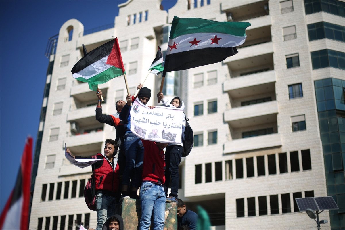 Hamas'a bağlı öğrenci birliği İslami Blok'un çağrısıyla düzenlenen eylemde, "Şehitlerin diyarı Halep, bizi affet", "Halep'i yakıp yıkan saldırılarınızı durdurun" yazılı dövizler taşındı.