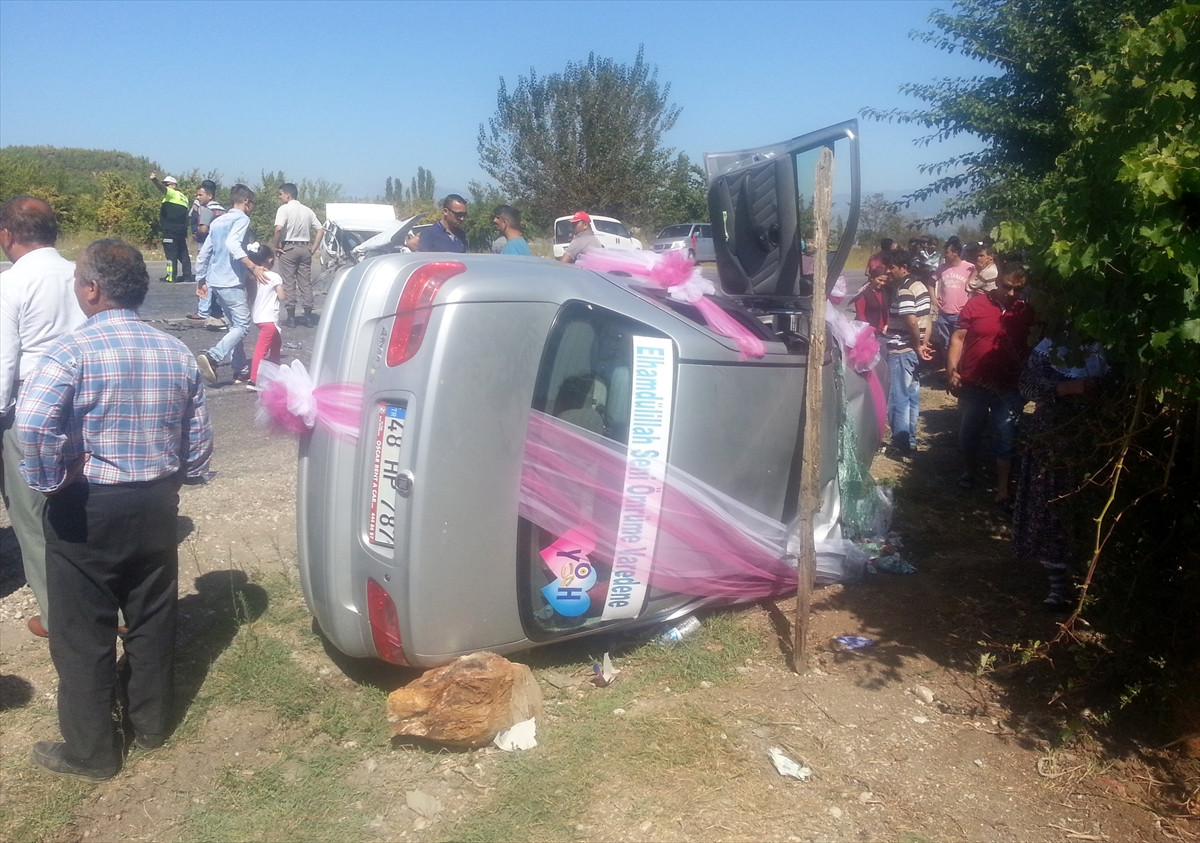 MUĞLA (AA) - Muğla'nın Seydikemer ilçesinde gelin arabasının, otomobille çarpışması sonucu gelin ve damat ile 5 kişi yaralandı.