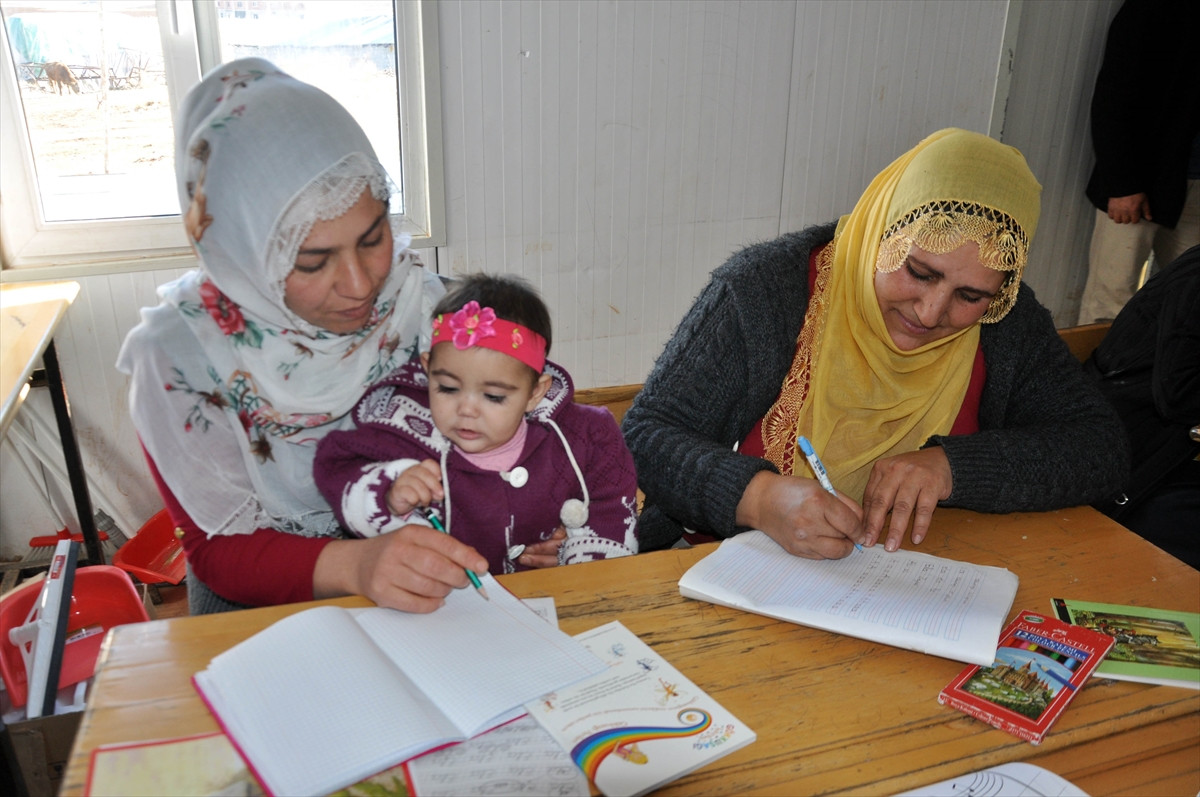 "Ailelerimiz bizi okula göndermedi. Bu nedenle okuma yazma bilmiyoruz. Bunu telafi etmek ve cahil kalmamak için gelinimle okuma yazma kursuna katıldık. Okuma yazma öğrenmek ve Türkçe konuşmak istiyoruz. Evde kimse kalmadığı için torunumu da yanımıza aldık. Bize bu imkanı sağladıkları için teşekkür ediyoruz."
