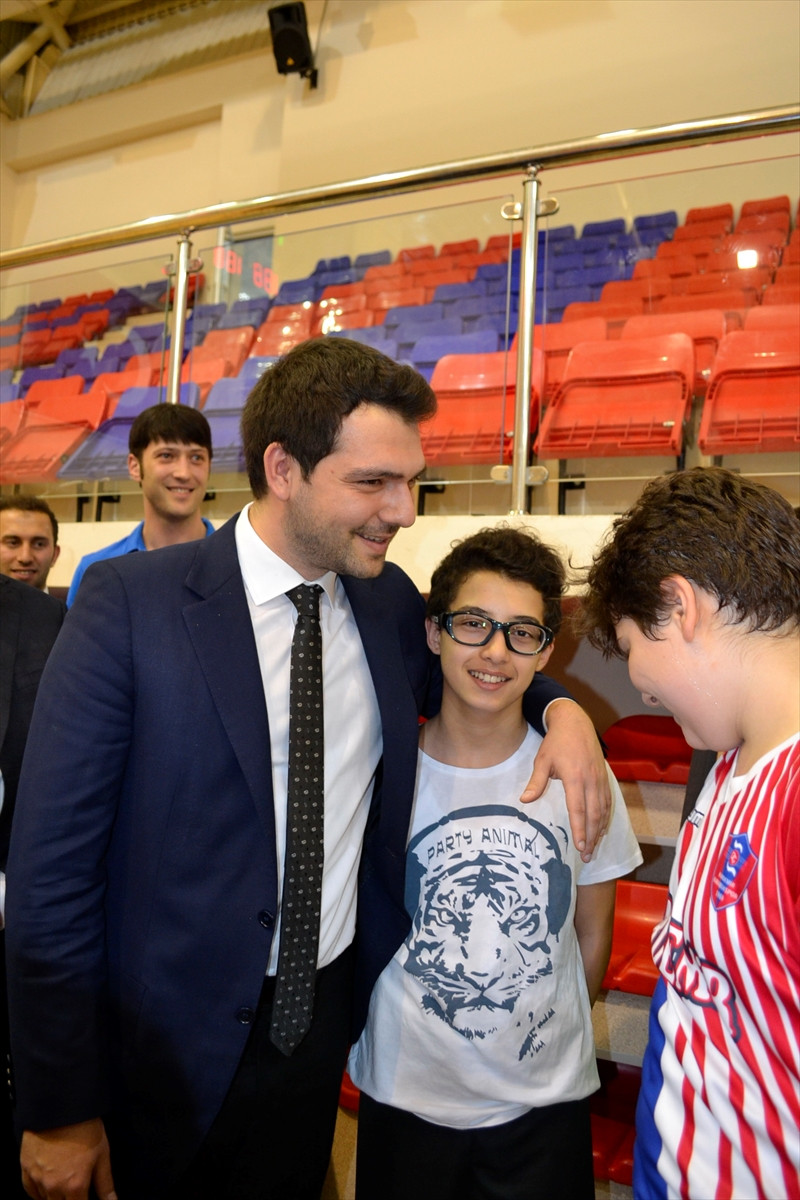 Boynukalın, Karabük Merkez Spor Salonu'na geçerek, salonda çalışan gençlerle sohbet etti, çalışmalar hakkında bilgi aldı.