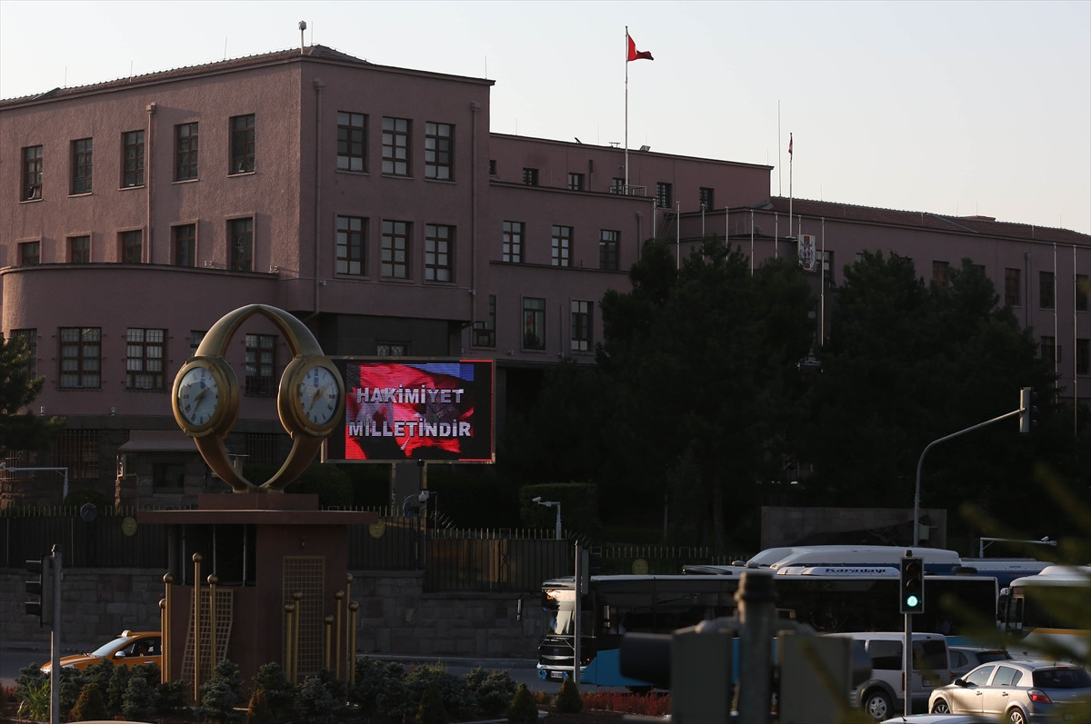 Darbe girişiminin ardından, Genelkurmay Başkanı Orgeneral Akar'ın emriyle karargahtaki dijital panodan, Türk bayrağı fotoğrafı ile "Hakimiyet milletindir" yazısı paylaşıldı.