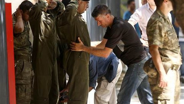 Çevik kuvvet ekiplerince geniş güvenlik önlemlerinin alındığı karargahtan emniyete bağlı özel harekatçılar tarafından teslim alınan darbeci askerlerin bir bölümü otobüslere bindirilirken, gözaltına alınanlar arasında Deniz Kuvvetleri Komutanlığında görevli 13 rütbeli askerin de bulunduğu öğrenildi.