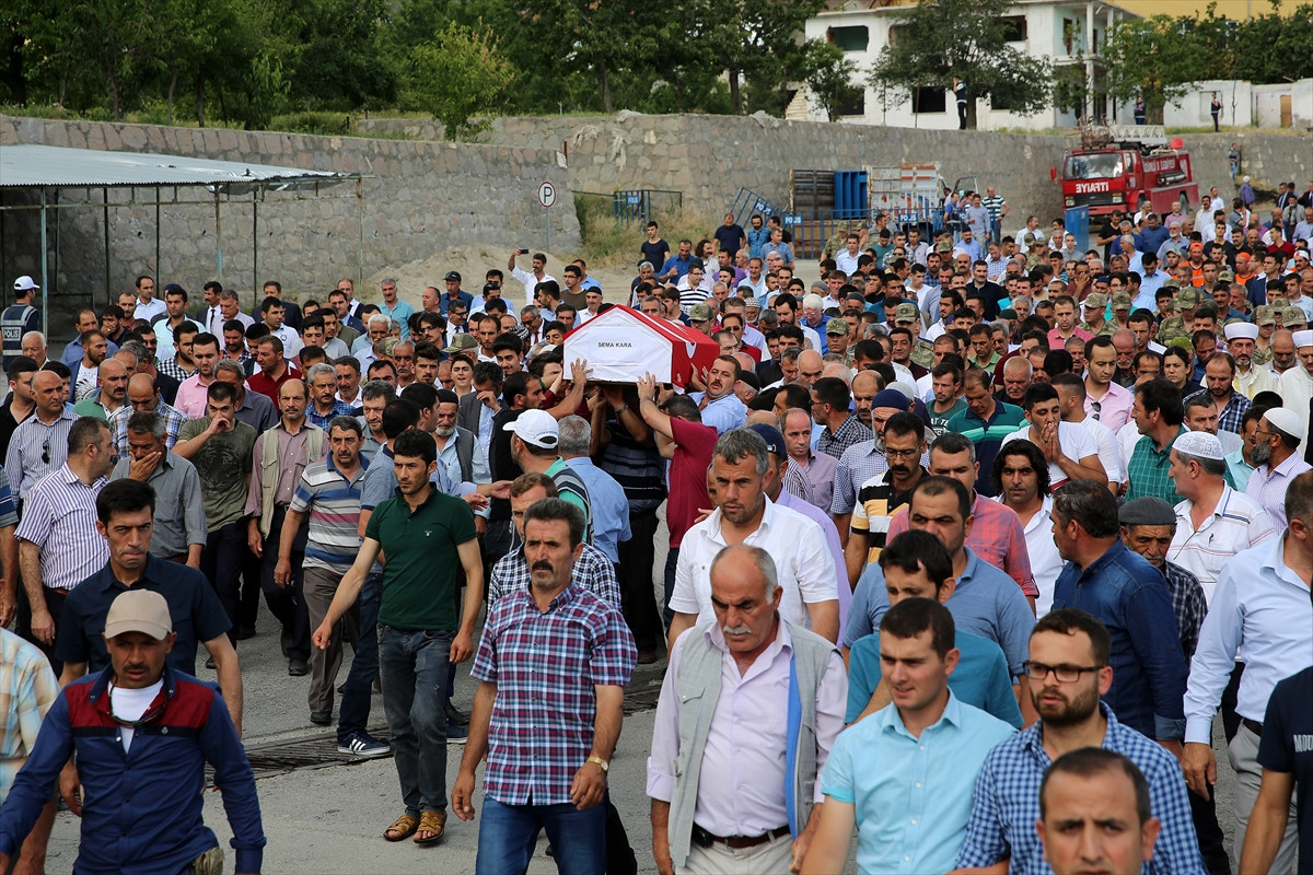 Kılınan namazın ardından askerler tarafından bir süre taşınan Kara'nın naaşı, ilçe mezarlığında toprağa verildi.