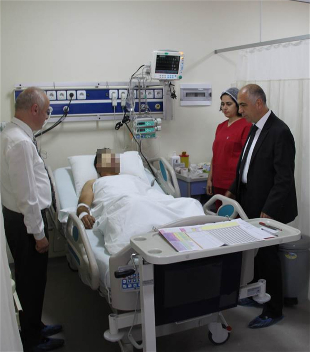 GİRESUN (AA) - Giresun Valisi Hasan Karahan, Dereli ilçesinde polis aracına düzenlenen silahlı saldırıda yaralanan polis memuru ile saldırı sonrası arama, tarama faaliyetlerinin yapıldığı sırada patlayıcının infilak etmesi sonucu yaralanan iki polis memurunu, hastanede ziyaret etti.