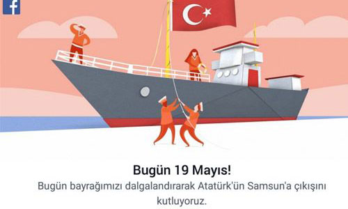 Facebook'un hazırladığı imajda "Bugün 19 Mayıs! bugün bayrağımızı dalgalandırarak Atatürk'ün Samsun'a çıkışını kutluyoruz" ifadesi ve bir gemiye Türk bayrağı çeken bir grup insanın yer aldığı bir tasarım yer alıyor.