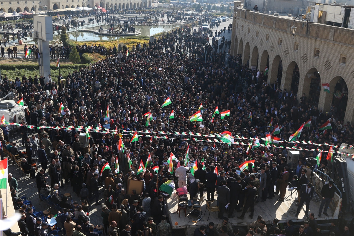 Ellerinde IKBY bayrağı bulunan ve Abdulvahid karşıtı sloganlar atan göstericiler, söz konusu milletvekili hakkında en kısa zamanda soruşturma açılmasını istedi.