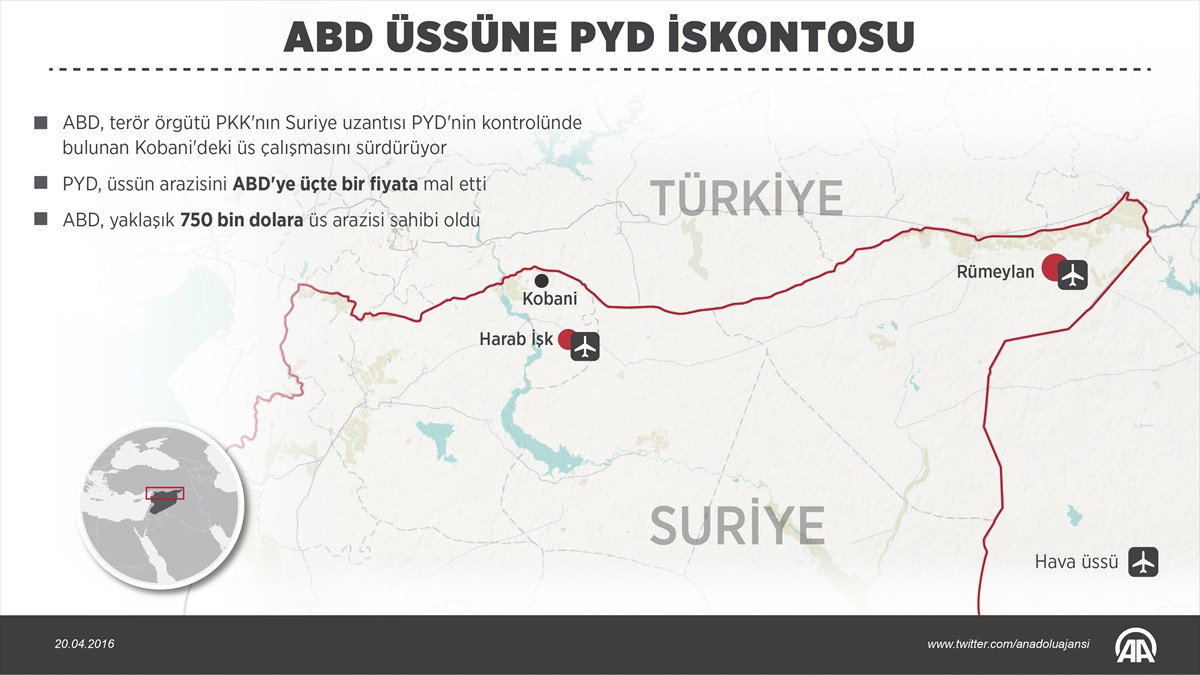 Kaynaklar ayrıca, PYD'nin ABD üssü için pist arazisi çevresindeki 100 hektarlık alana da el koyarak, arazinin toplam büyüklüğünü 400 dönüme çıkardığını ifade etti.