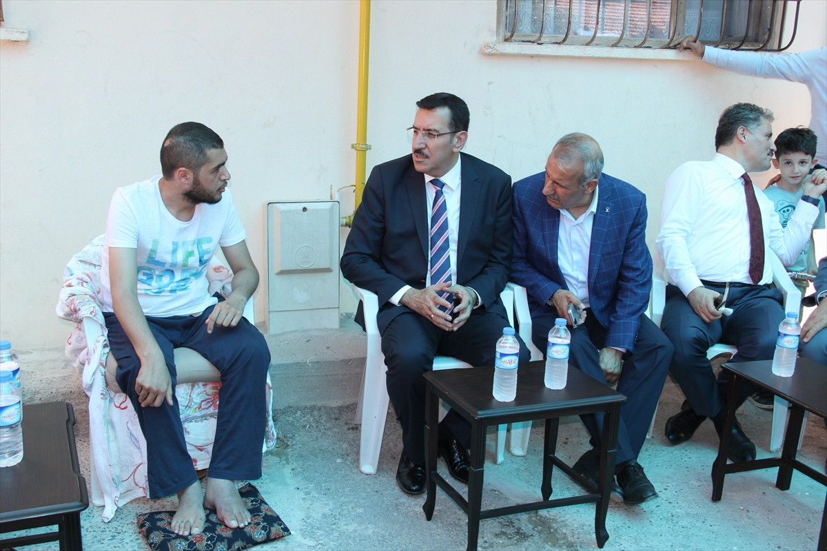 Bakan Tüfenkci, daha sonra Hakkari Yüksekova'da terör örgütü mensuplarınca atılan roket sonucu yaralanan ve GATA'da gördüğü tedavisine bayram dolayısıyla ara vererek memleketine gelen özel harekat polisi Şafak Coşkun'u evinde ziyaret etti.