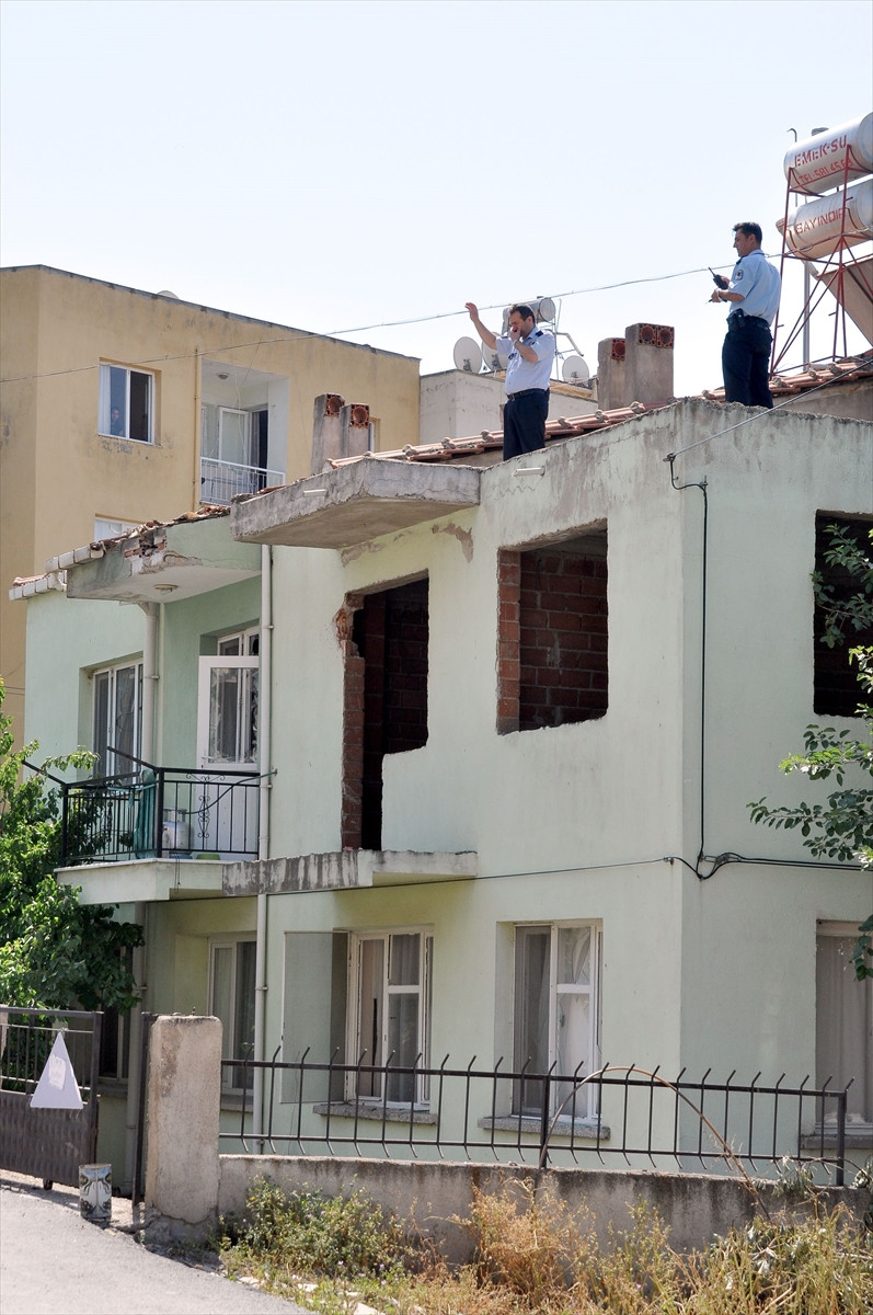 İZMİR (AA) - İzmir'de Bayındır İlçe Emniyet Müdürlüğüne düzenlenen roketatarlı saldırıda teröristlerin ateşlediği iki roket mermisinden biri emniyet binası yakınındaki evin çatısına, diğeri de depo olarak kullanılan alana isabet etti.