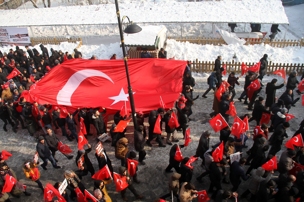 Gruptakiler, ardından "Ağrı teröre mezar olacak", "Şehitler ölmez vatan bölünmez", "Vatan Sana Canım Feda" ve "Kahrolsun PKK" şeklinde slogan atarak yürüyüşe başladı.