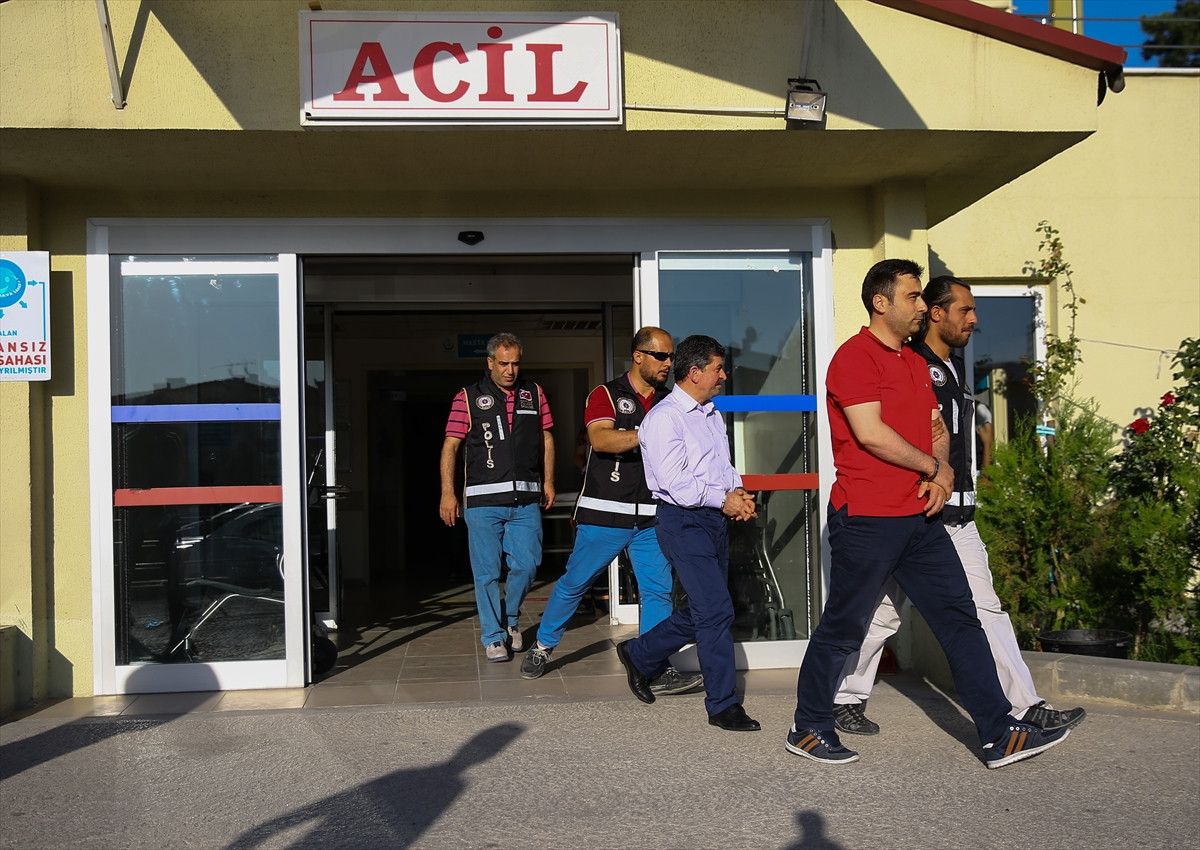 Zanlılar, sağlık kontrolünden geçirilmek üzere midibüsle Gazi Mustafa Kemal Devlet Hastanesine getirildi.