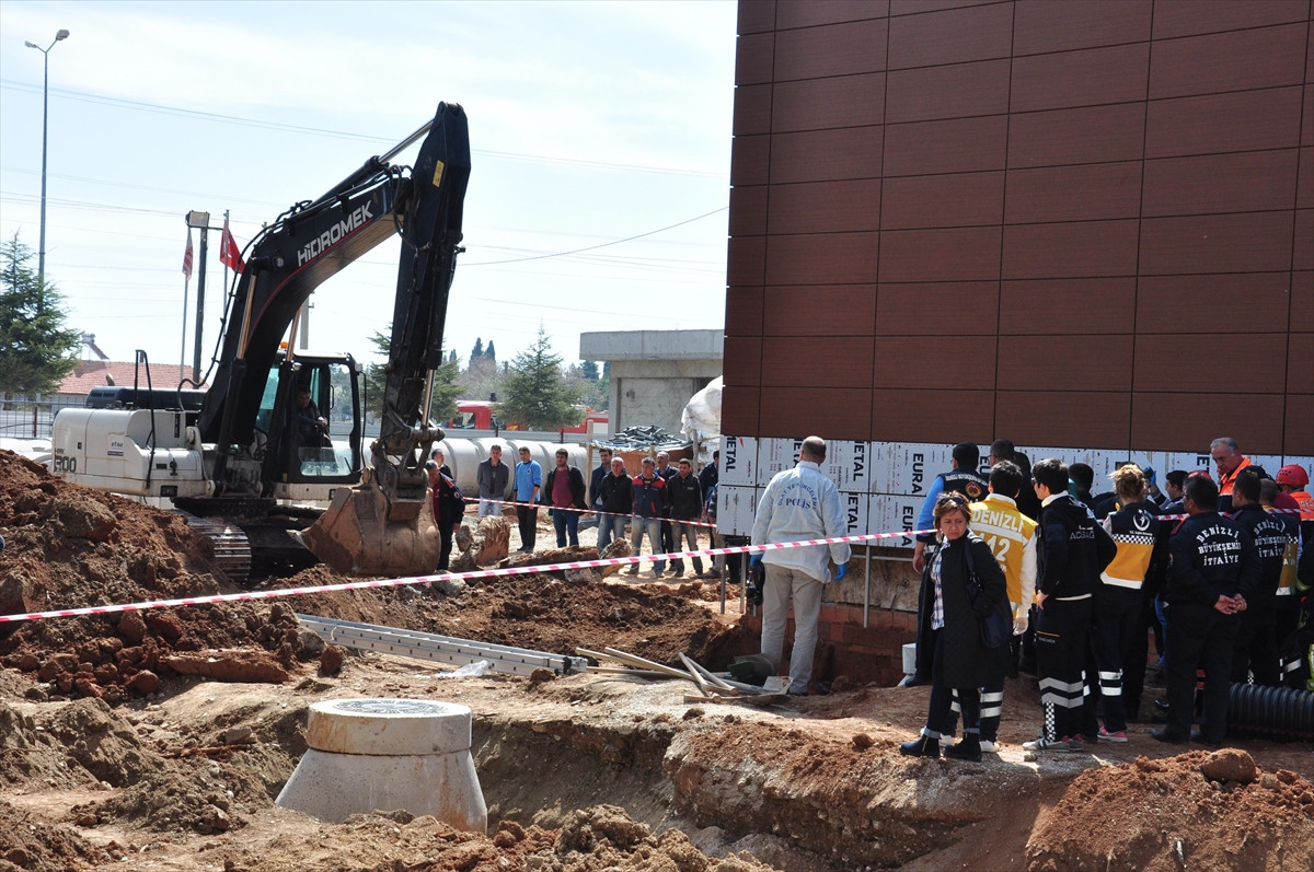 Çivril kaymakamlığı görevine vekalet eden Çal Kaymakamı Selami Korkutata, AA muhabirine, Yenimahalle'de yapımı süren devlet hastanesinin kanalizasyon borularının döşenmesi için açılan yaklaşık 5 metre derinliğindeki çukurda toprak kayması meydana geldiğini söyledi.