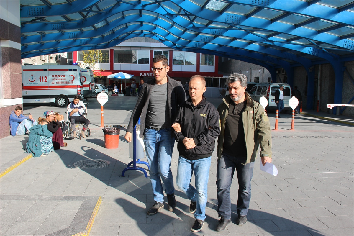 Konya Eğitim ve Araştırma Hastanesinde sağlık kontrolünden geçirilen zanlılar, emniyete götürüldü.