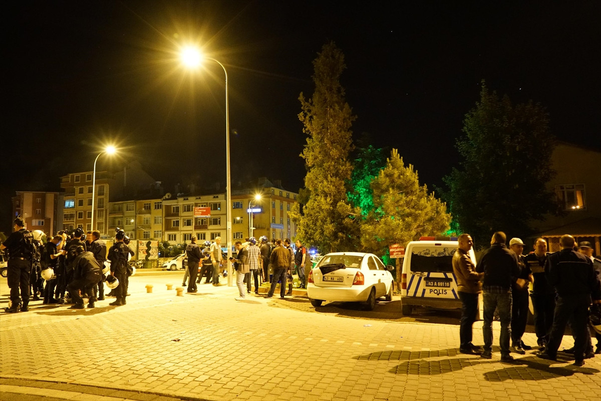 KÜTAHYA (AA) - Kütahya'nın Tavşanlı ilçesinde Türk bayrağının yakıldığı iddiasıyla polis merkezi önünde toplanan gruba güvenlik güçleri müdahale etti.