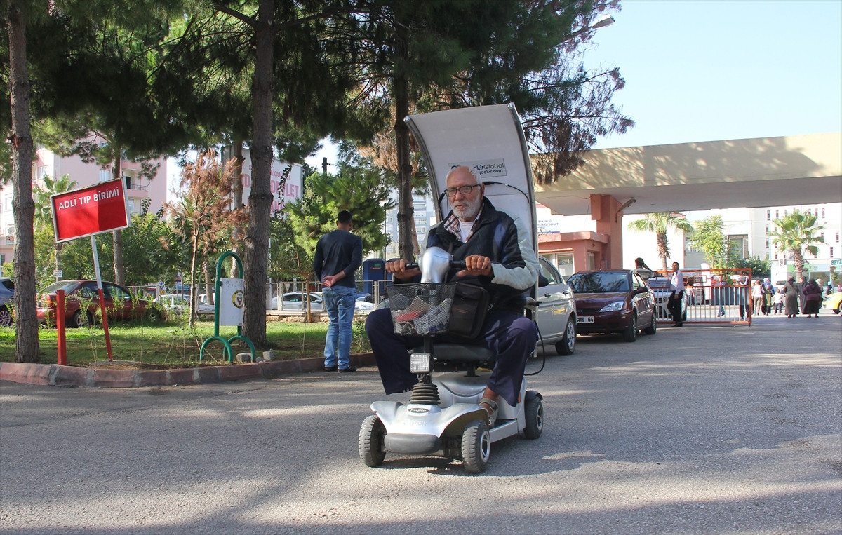 ADANA (AA) - Adana'da engelli Emin Çerikan, akülü engelli aracına güneş paneli monte ettirdi.