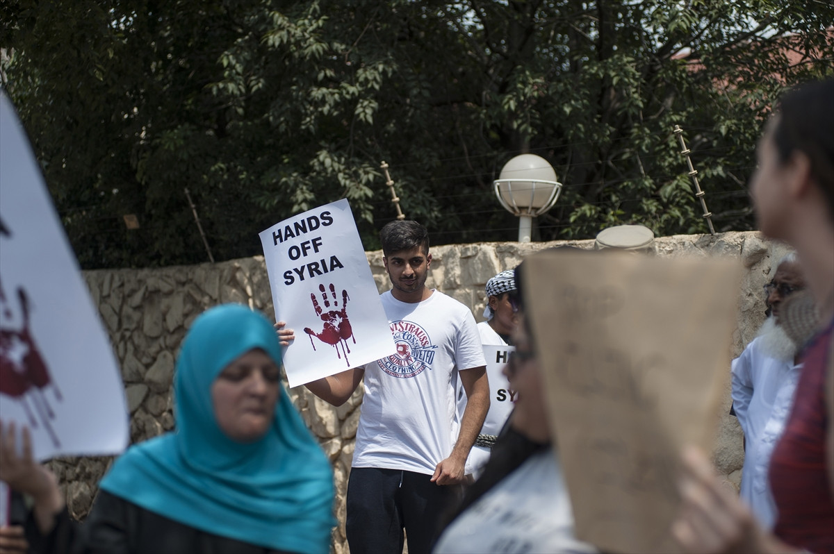 Güney Afrika'daki Suriye Büyükelçiliğinin önünde yapılan basın açıklamasından sonra grup, olaysız bir şekilde dağıldı.