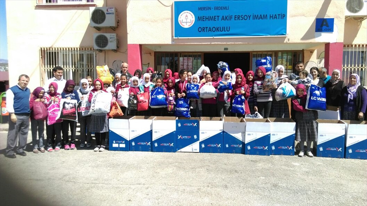 Erdemli'de Mehmet Akif Ersoy İmam Hatip Ortaokulu öğrencileri tarafından başlatılan kampanyada, Cizre'de eğitim gören öğrenciler için kırtasiye ve elbise, Mardin'de görev yapan güvenlik güçleri için de yiyecek toplandı.