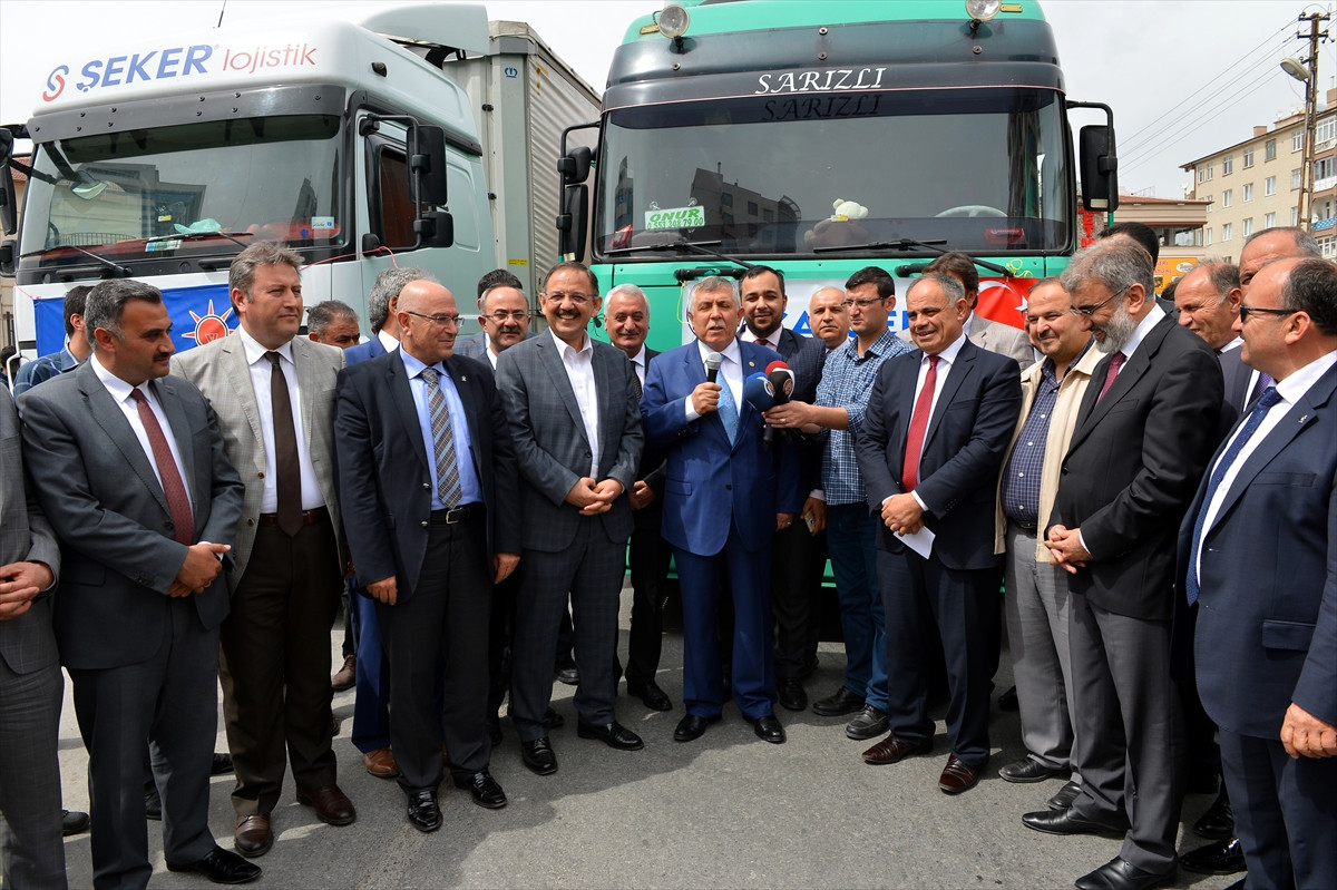 Tırların dualar ile uğurlandığı törene, AK Parti Genel Başkan Yardımcısı Mehmet Özhaseki, AK Parti Genel Başkan Danışmanı ve Kayseri Milletvekili Taner Yıldız, Büyükşehir Belediye Başkanı Mustafa Çelik, AK Parti İl Başkanı Hüseyin Cahid Özden de katıldı.