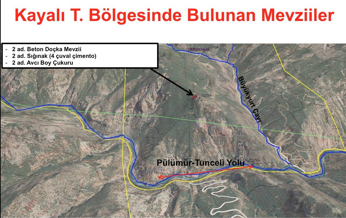 Türk Silahlı Kuvvetlerinden, gelen talepler üzerine yapılan bilgilendirmeye göre, Tunceli-Pülümür karayolunda yol kesen, araçları durdurup kimlik soran, güvenlik güçlerini kaçıran, bölgeye taze meyve, sebze, süt ürünleri taşıyan kamyonları, tırları yakıp yöre halkını mağdur eden teröristlere yönelik operasyon düzenlendi. Operasyonda ateş etmeye imkan verecek şekilde hazırlanmış delik, mazgalları bulunan ve Türk Silahlı Kuvvetlerinin operasyonlarına karşı yapılmış beton koruganlar imha edildi.