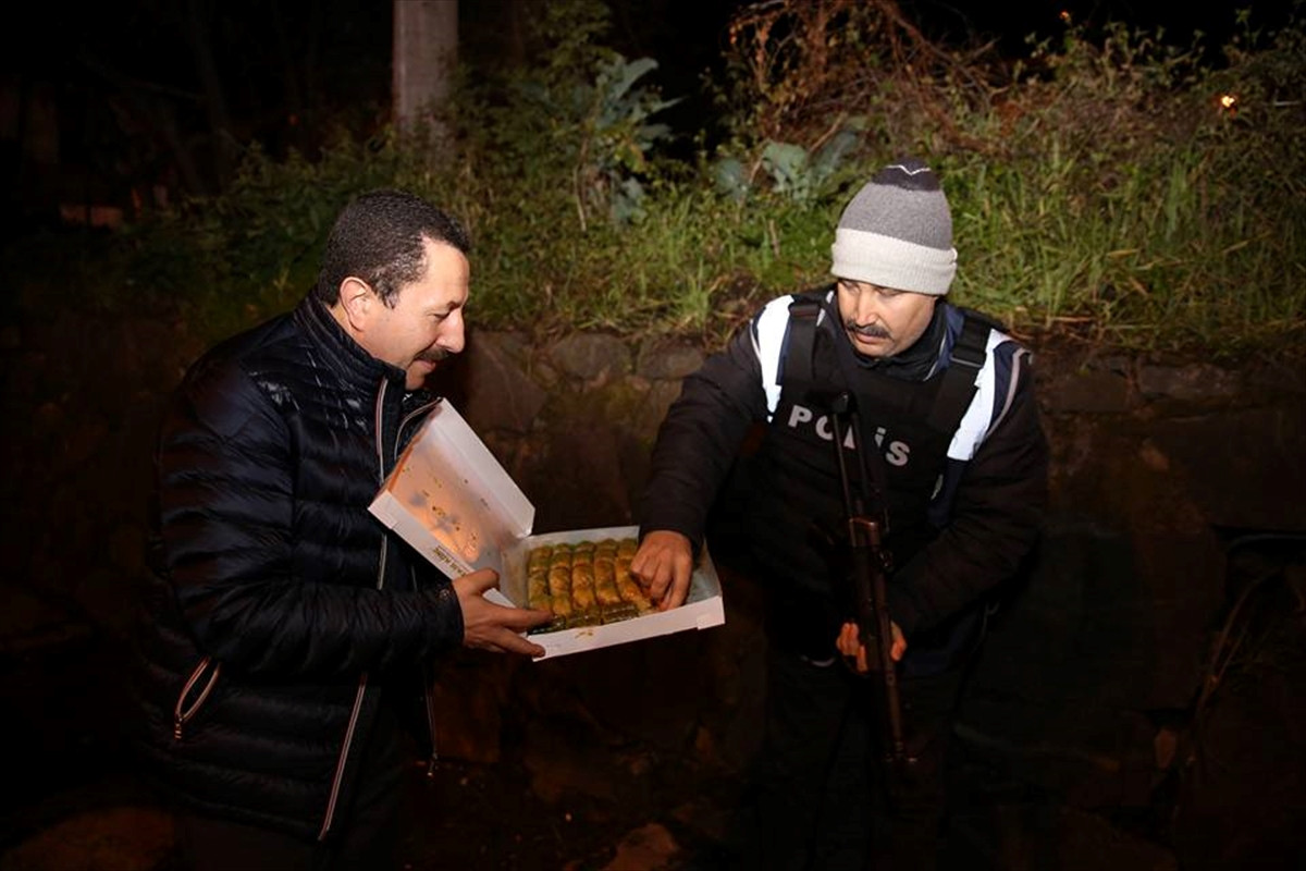 ORDU (AA) - Ordu Valisi İrfan Balkanlıoğlu, Altınordu ilçesinde trafik denetimi yapan polis ve jandarma ekiplerini ziyaret ederek baklava ikram etti.