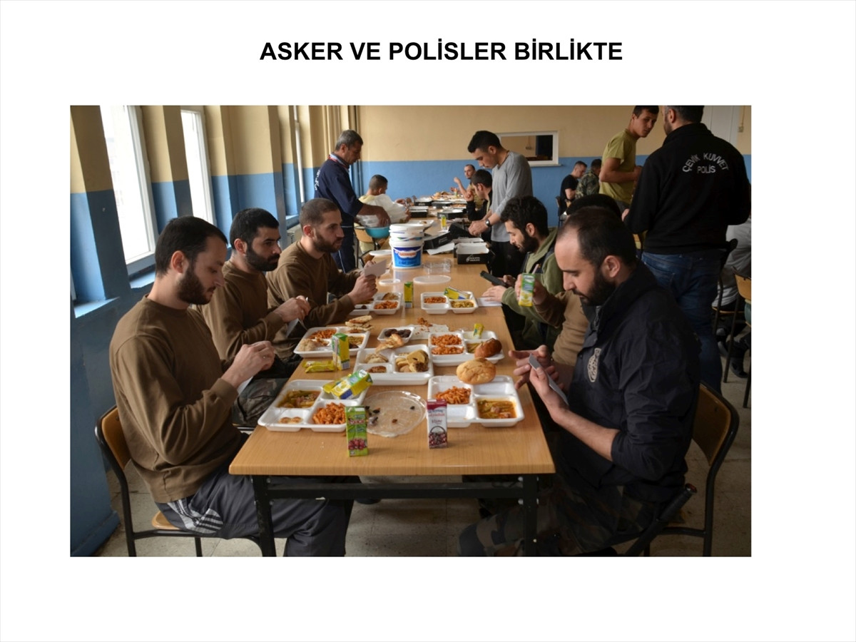 Zırhlı araçlarla birliklere getirilen paketler, terörle omuz omuza mücadele eden asker ve polislerin yan yana oturduğu yemek masalarında açıldı.