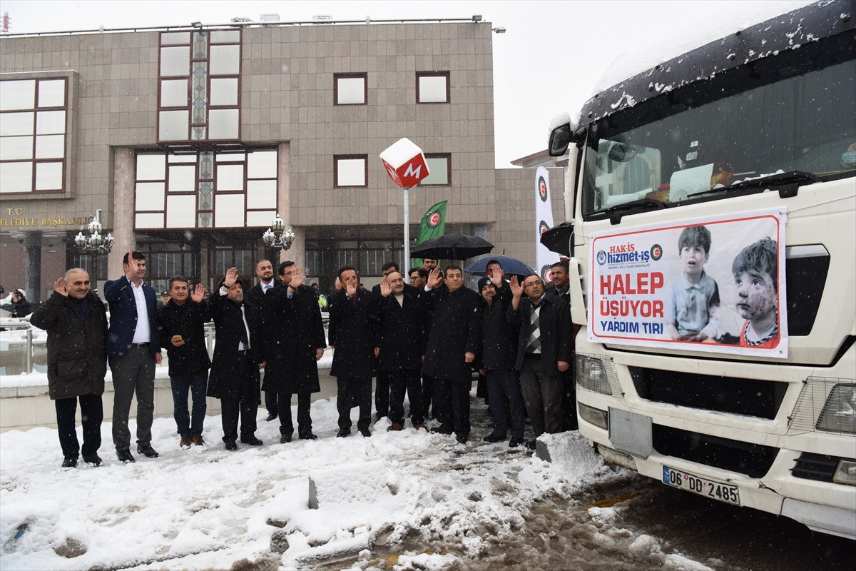 "Halep Üşüyor" sloganı ile toplanan kömür, battaniye, çocuk botları ve tekerli sandalye gibi malzemelerin bulunduğu yardım tırının yola çıkması dolayısıyla Keçiören Belediyesi başkanlık binası önünde tören düzenlendi.