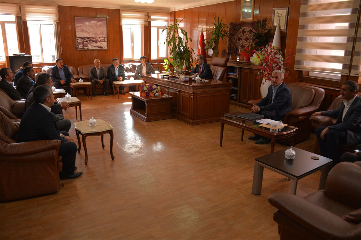 HAKKARİ (AA) - Hakkari'deki mahalle muhtarları, İçişleri Bakanlığınca Kanun Hükmünde Kararname (KHK) ile Hakkari Belediye Başkanı olarak görevlendirilen Vali Yardımcısı Cüneyt Epcim'i belediyedeki makamında ziyaret etti.
