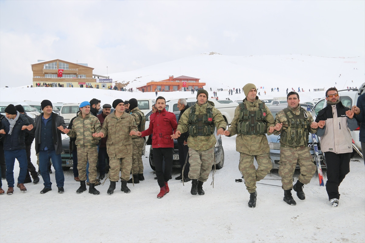 HAKKARİ (AA) - Hakkari'de kayak merkezine giden vatandaşlar, bölgede nöbet tutan askerlerle halay çekti.
