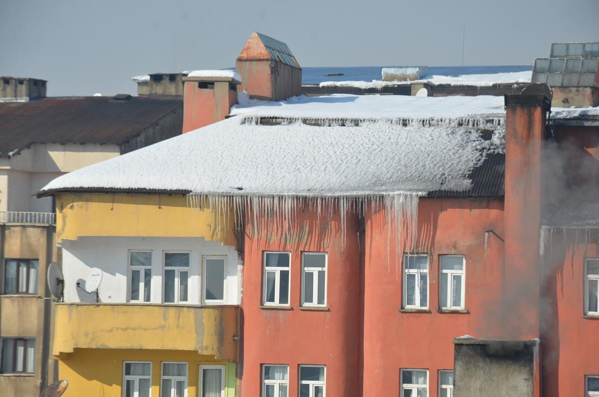 İlçe merkezindeki evlerin saçaklarında ise boyları bir metreyi bulan buz sarkıtları oluştu, vatandaşlar buzları kendi imkanlarıyla kırmaya çalıştı.