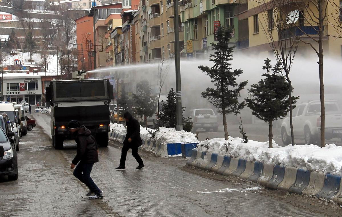 Uyarıları dikkate almayan gruba polis, tazyikli su ve göz yaşartıcı gazla müdahale etti.