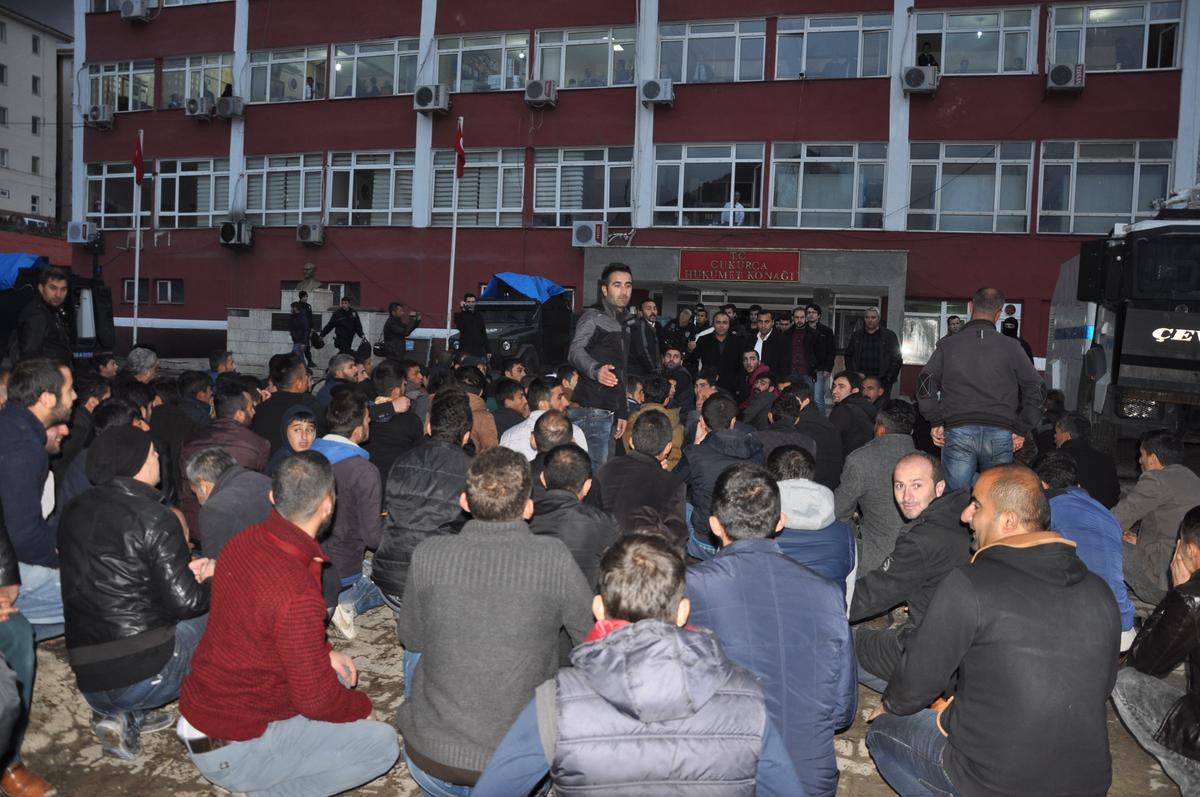 Kaymakamlık önünde toplanan bir grup, operasyona tepki göstererek, oturma eylemi gerçekleştirdi.