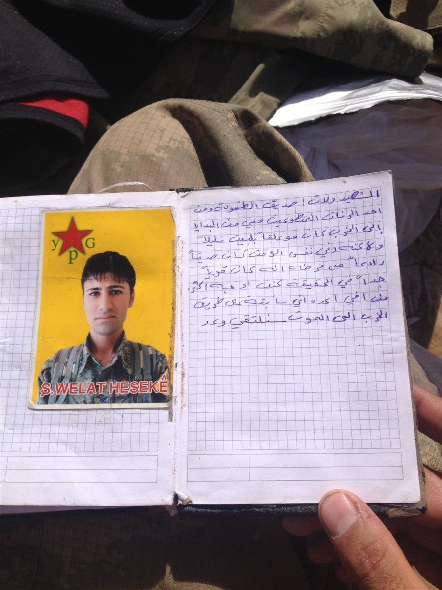 Operasyon nedeniyle teröristlerin bırakıp kaçtıkları malzemeler arasında üzerinde "YPG" armalı fotoğraflar ve örgüt mensuplarını tanıtıcı el yazısı ile yazılmış yazılar bulunan defterler dikkati çekti.