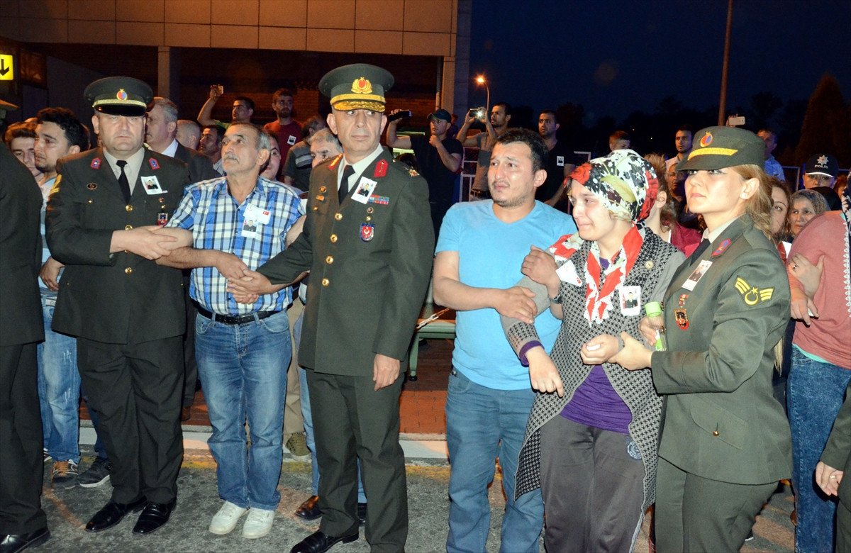 Burada Kur'an-ı Kerim tilavetinin ardından şehidin Türk bayrağına sarılı tabutu, askerlerin omuzunda cenaze aracına konuldu. Havalimanını çevreleyen tel örgünün arkasında toplanan çok sayıda vatandaş, şehit için dua etti. Şehidin yakınlarının gözyaşlarına hakim olamadığı görüldü.