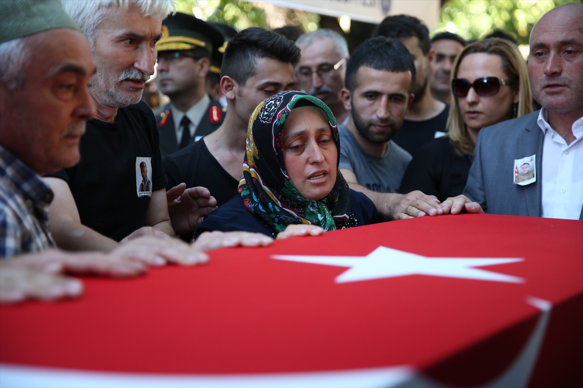 Şehidin annesi Azime Yılmaz, musalla taşına konan tabuta sarılarak, "Ben sana doyamadım. Sana kalkan eller kırılsın. Sen sadece vatan görevine gittin evlat. Allah'ım onları perişan et yarabbim." diye gözyaşı döktü.