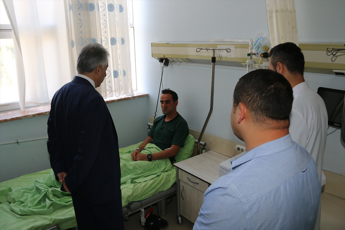 HAKKARİ (AA) - Hakkari Valisi Cüneyt Orhan Toprak, terör saldırısında yaralanan askerleri tedavi gördükleri hastanede ziyaret etti.