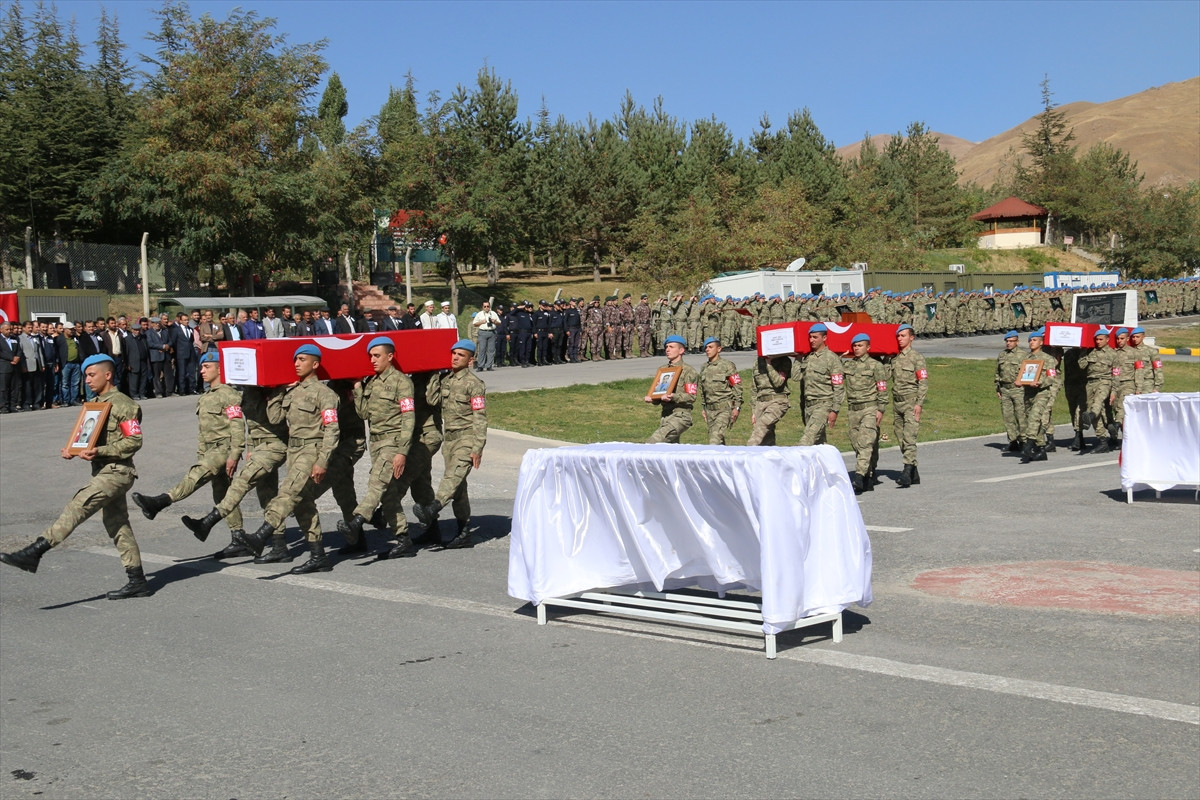 HAKKARİ (AA) - Yüksekova'daki terör saldırısında şehit olan 3 köy korucusu için Hakkari'de cenaze töreni düzenlendi.