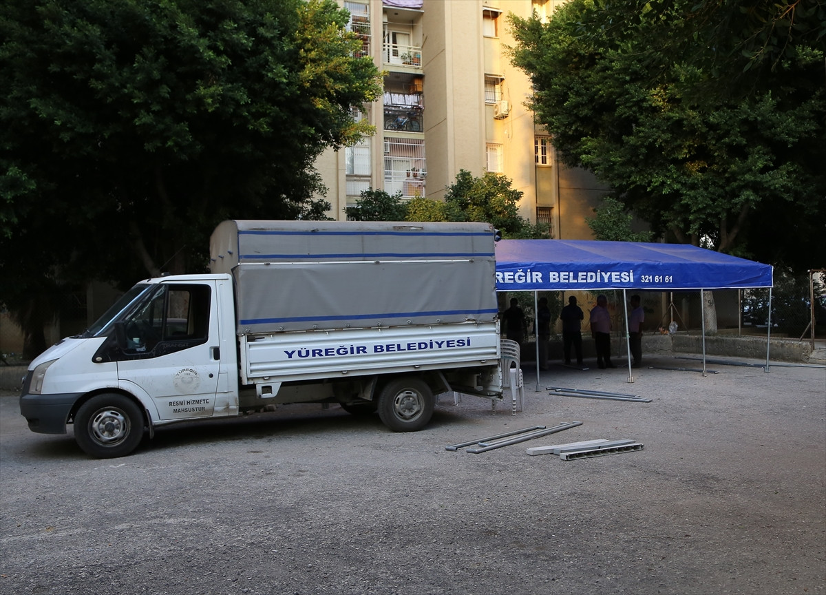 Yüreğir Belediyesi ekipleri, evin önüne taziye çadırı kurdu.