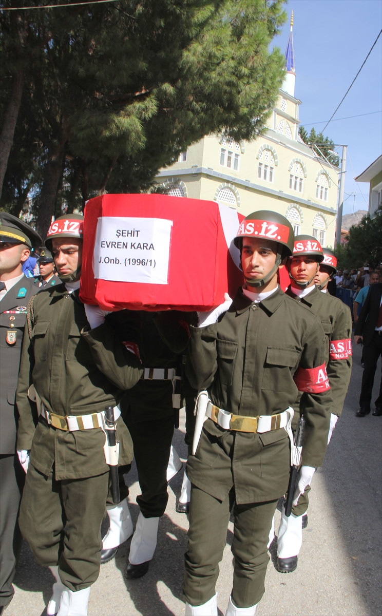 MANİSA (AA) - Hakkari'nin Şemdinli ilçesinde PKK'lı teröristlerin bomba yüklü araçla düzenlediği saldırıda şehit olan Onbaşı Evren Kara (23), memleketi Manisa'nın Alaşehir ilçesinde toprağa verildi.