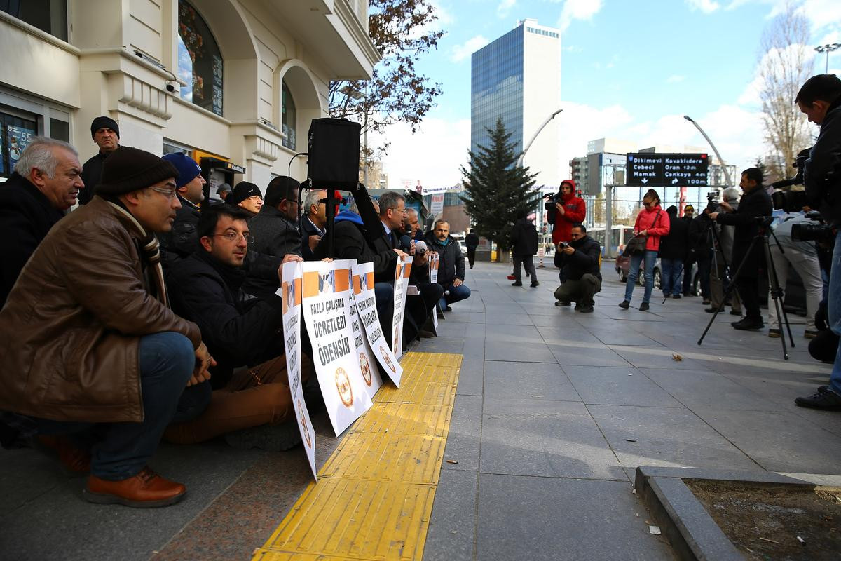 HAKSEN üyeleri, memurların taleplerini içeren dövizlerle Kızılay Gazi Mustafa Kemal Bulvarı'nda toplandı.