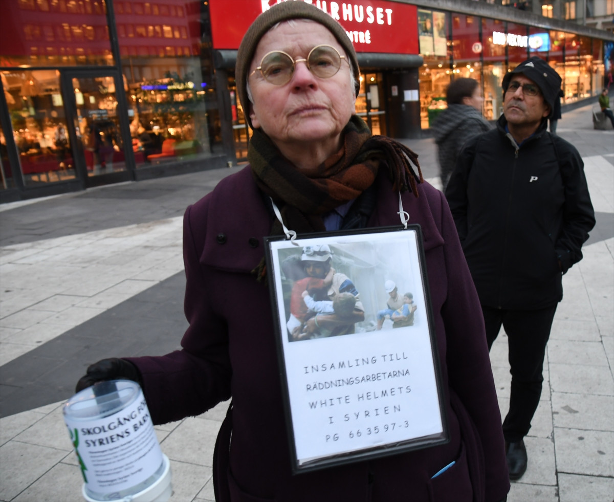 İsveç Suriye Federasyonu, Esed rejiminin ve Rusya’nın Suriye’nin Halep kentine yönelik hava saldırılarını Segel Torg Meydanı'nda protesto etti.