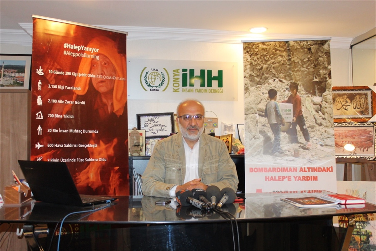 Uysal, Konya İHH İnsani Yardım Derneğinde düzenlediği basın toplantısında, Suriye rejimi ve Rus güçlerinin Halep kentinde onlarca kişinin ölümüne neden olan hava saldırılarına tepki gösterdi.