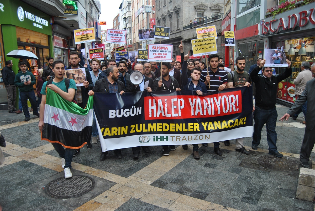 TRABZON (AA) - Trabzon İHH İnsani Yardım Derneği üyesi bir grup, Halep'te yaşanan olayları protesto etti.