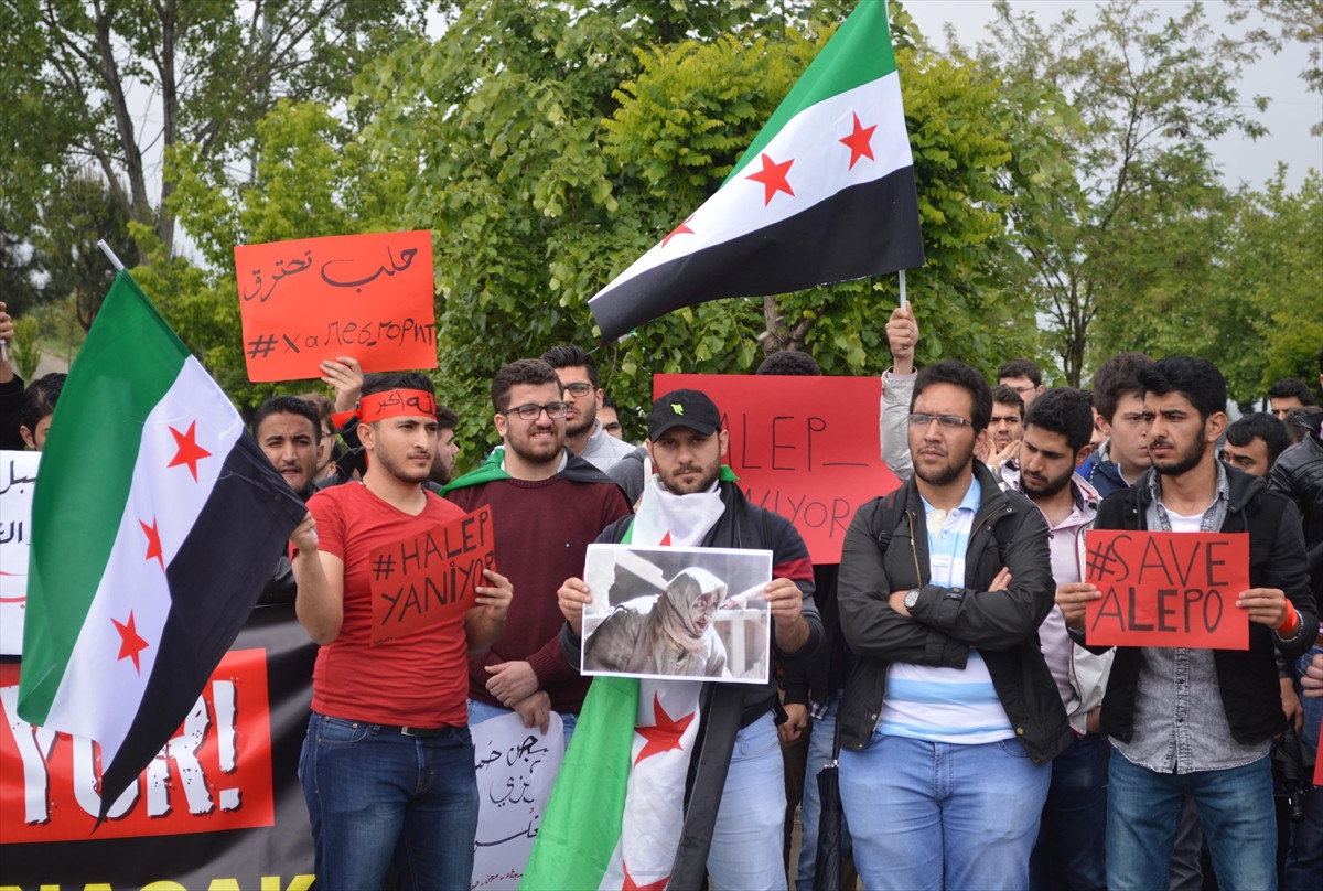 SAKARYA (AA) - Sakarya İHH İnsani Yardım Derneği ve Özgür-Der üyesi bir grup, Halep'te yaşanan olayları protesto etti.