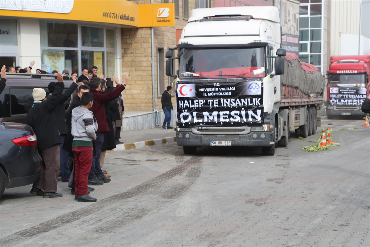 NEVŞEHİR (AA) - Nevşehir Valiliğince Halep için düzenlenen kampanya kapsamında toplanılan çeşitli temel ihtiyaç malzemelerini taşıyan 11 tır, Suriye'ye gönderildi.